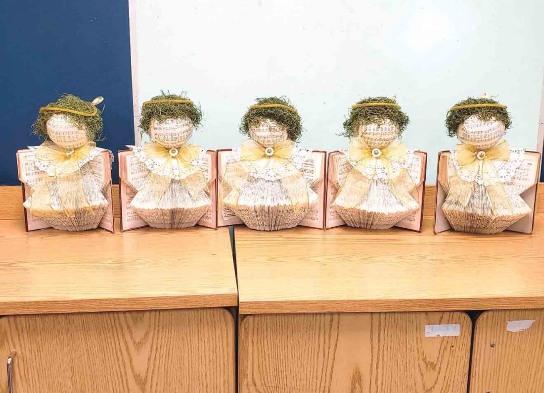 - Jackson Middle School art honors students made a choir of angels from repurposed hymnals for the Festival of Trees. (Photo Provided)
