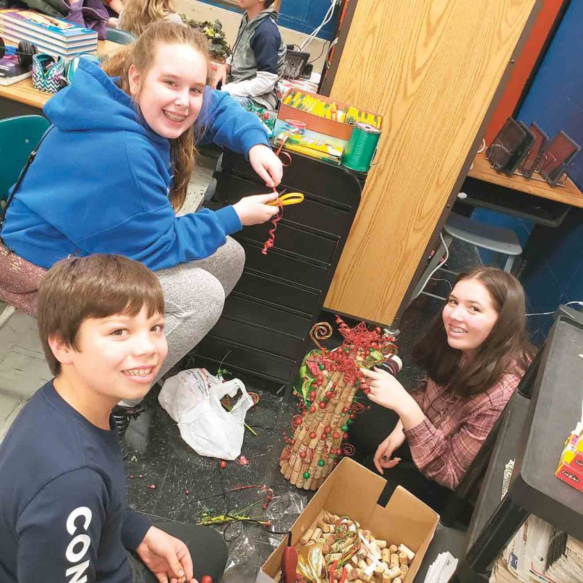 - Sheridan Bunnell, Jack Whited and Lily-Rose Walker work on a cork Christmas tree. (Photo Provided)
