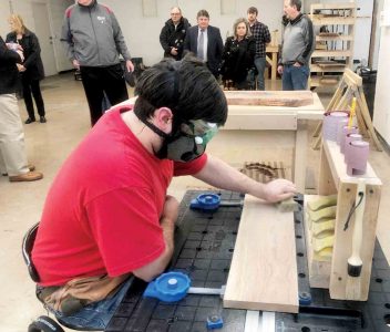 “The Center is an integrated work facility which employs individuals with and without disabilities servicing the recycling business, manufacturing of cleaning cloths, data management projects, a telephone contact center, and now a woodworking center,” Mossor said.