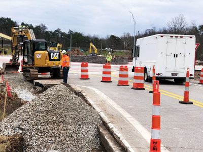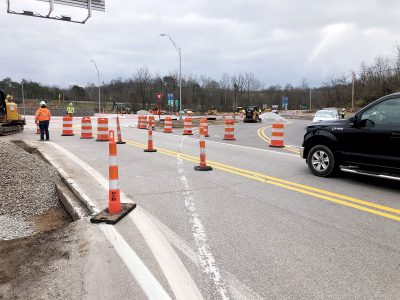 - Crews were working Tuesday on the roundabout outside Williamstown near I-77. In the evenings, the road is open to traffic. During the day, as crews continue to do work around the site, access is limited. (Photo by Brett Dunlap)