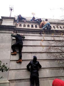 People scale a wall at the U.S. Capitol during Wednesday’s riot. (Photo provided by Eric Barber)