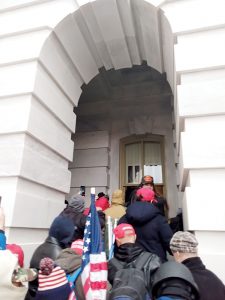 Protesters head for a door at the U.S. Capitol during Wednesday’s violent protest. (Photo provided by Eric Barber)