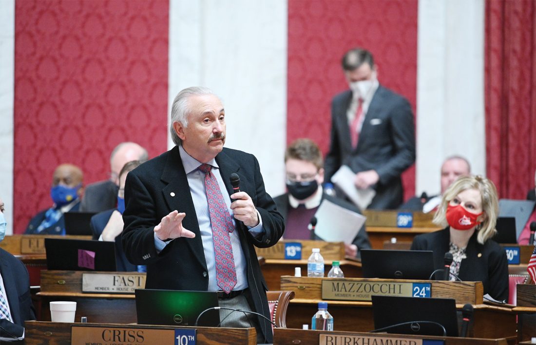Del. Vernon Criss, R-Wood, speaks in favor of elevating the West Virginia Development Office and the Division of Tourism to cabinet-level positions. (Photo Provided)