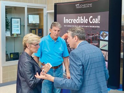 There, Manchin and Granholm met with companies working on alternative uses for coal and natural gas that allows those fossil fuels to still be used while mitigating their greenhouse gas emissions. Afterward, they met with research students working on ways to extract rare earth minerals used in the manufacturing of electric vehicle batteries from acid mine drainage. Later, the two toured a coal mine.