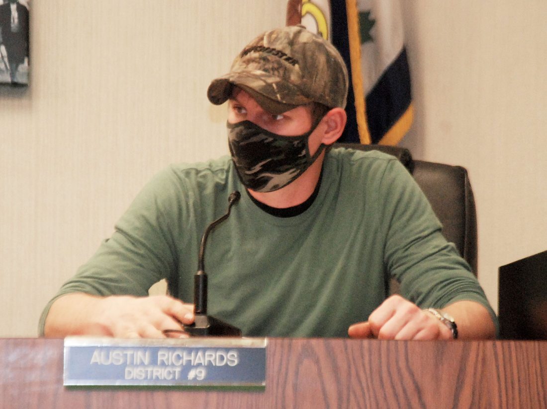 - Parkersburg City Councilman Austin Richards asks a question about the city information technology department during a budget hearing Monday in council chambers at the Municipal Building. (Photo by Evan Bevins)