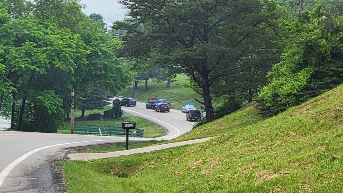 Law enforcement officers in Washington County are assembled on Ohio 339 near the Belpre Township Cemetery near the 1600 block of Route 339. (Photo by Evan Bevins)