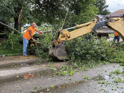 A tree also came down on a house along an alley off Florence Street in Belpre. City crews won’t be handling that one as it could cause more potential damage to the home, Lorentz said, adding a professional tree service business will have to come in and remove it.