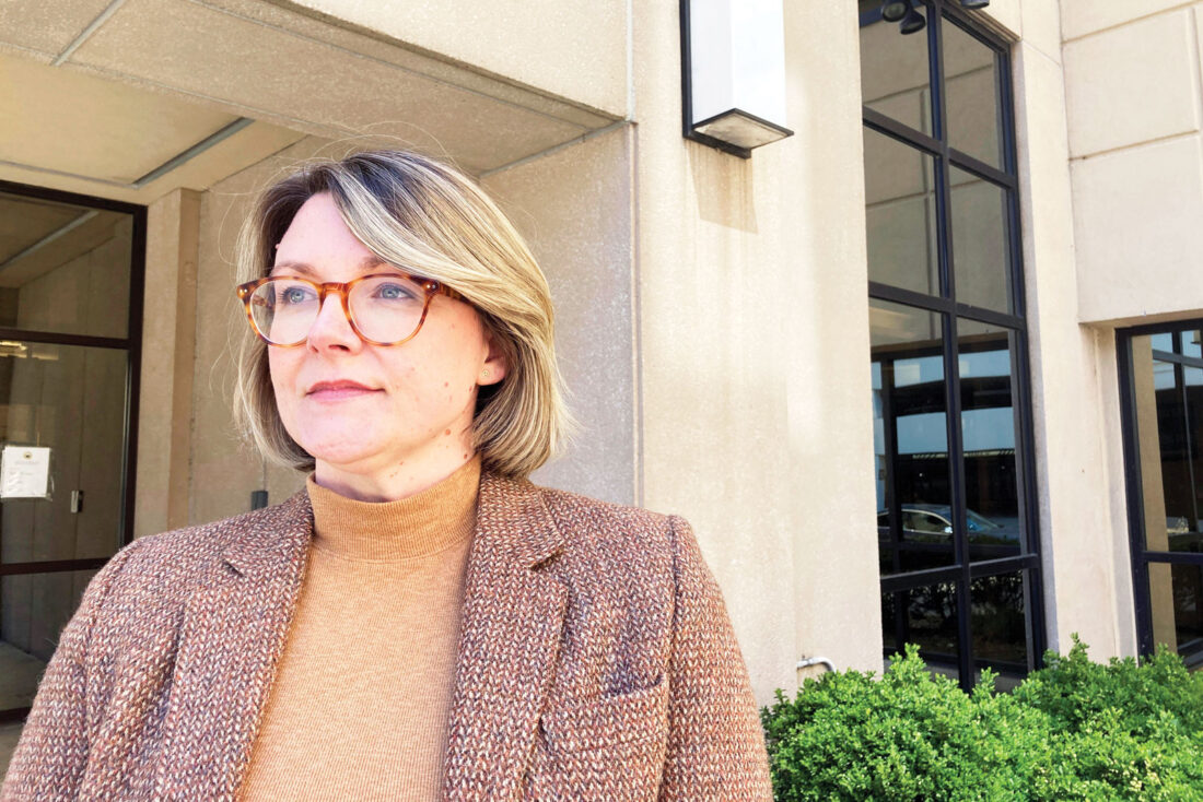 Lindsey Jacobs, a 38-year-old lawyer from Morgantown, poses outside the Kanawha County Magistrate Court in Charleston. Jacobs was forcibly removed from the gallery at the West Virginia Capitol and later arrested on three misdemeanors for disrupting lawmakers as they moved to ban abortion in September 2022. (AP Photo)