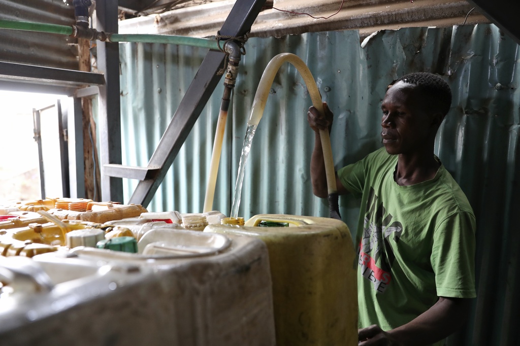 - A man fills cans with water from a water tank vendor at the Kibera slum in Nairobi, Kenya Tuesday, March 21, 2023. World Water Day will be observed on March 22, and will aim to highlight the importance of freshwater and advocate for sustainable management of this vital resource. (AP Photo/Brian Inganga)