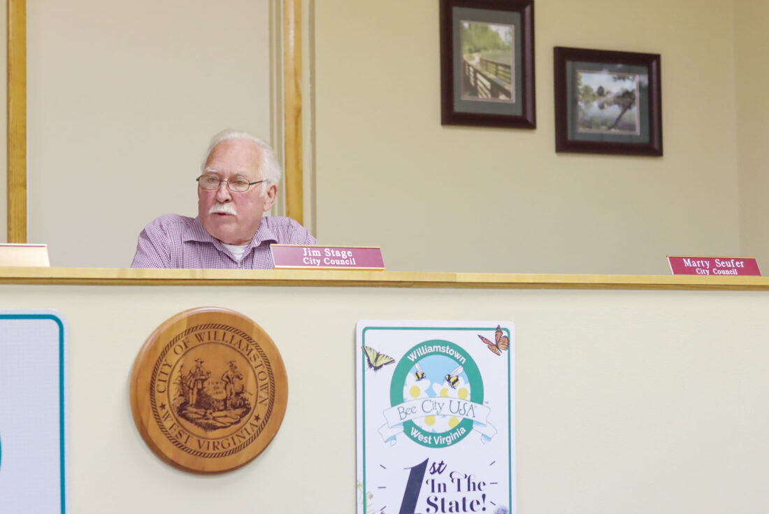 - Councilmember Jim Stage runs the meeting, as Mayor Paul Jordan was unable to attend the Williamstown City Council meeting on Tuesday. (Photo by James Dobbs)