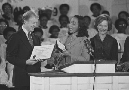 Jimmy and Rosalynn Carter welcomed the Kings to the White House to present Coretta with a posthumous Medal of Freedom for her husband, making him one of the few Black Americans to receive the nation’s highest civilian honor at that point. Carter helped establish government observances of King’s birthday and enabled the federal historic site encompassing King’s birthplace, burial site and the family’s Ebenezer Baptist Church.