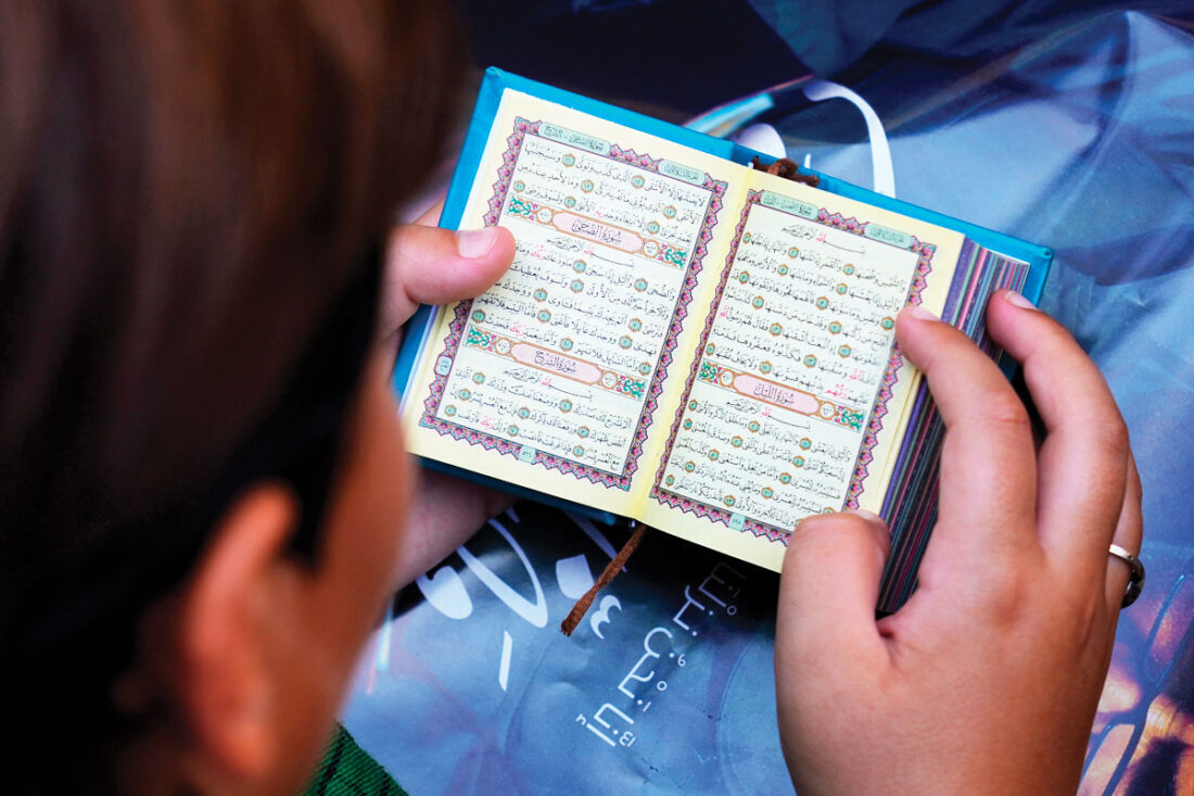 - A boy sits on the ground as he reads the Quran during a rally after Friday prayers in the southern Beirut suburb of Dahiyeh, Lebanon, Friday. (AP Photo)