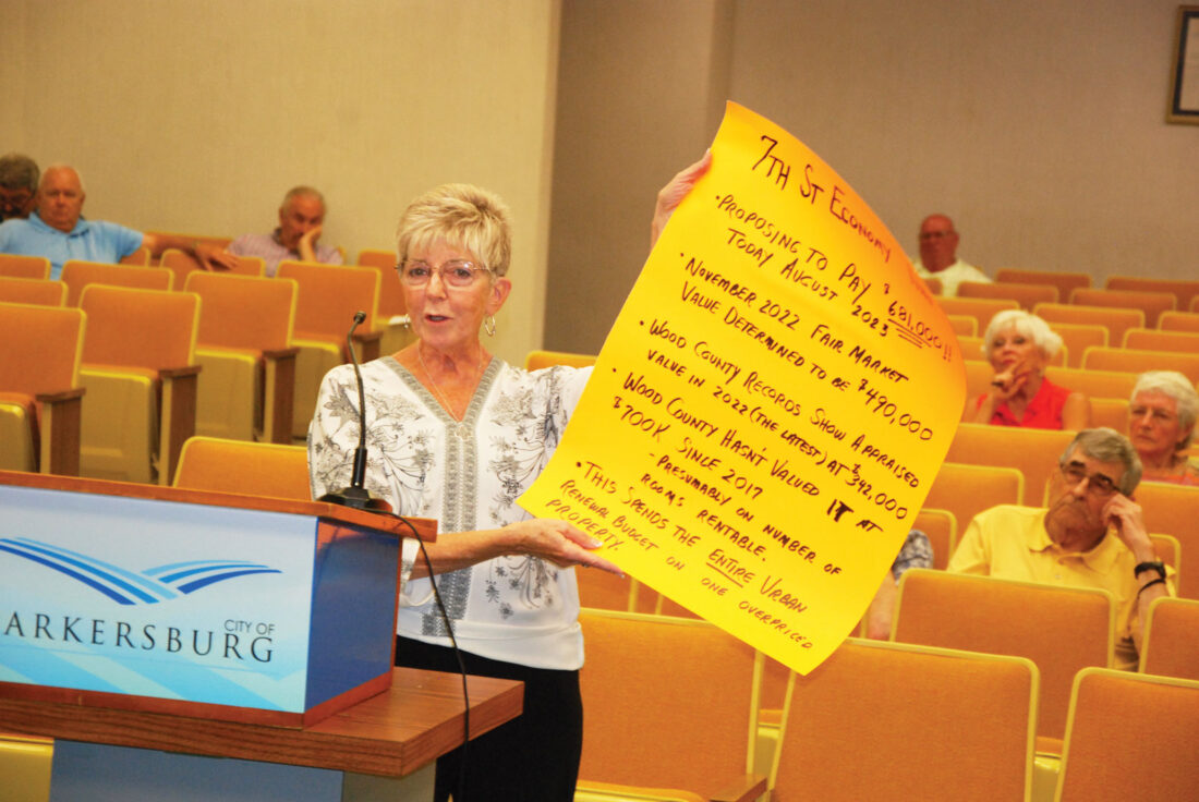 Parkersburg resident Sherry West said she had been in talks in years past to sell the site as a realtor but could not because of its condition. She questioned the amount being considered, noting it was appraised by the county at $342,000 last year.