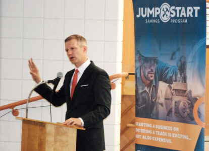 PARKERSBURG — State Treasurer Riley Moore invited students from West Virginia University at Parkersburg and the Wood County Technical Center Tuesday to establish Jumpstart savings accounts while they have a chance to start with up to $12,000 extra.