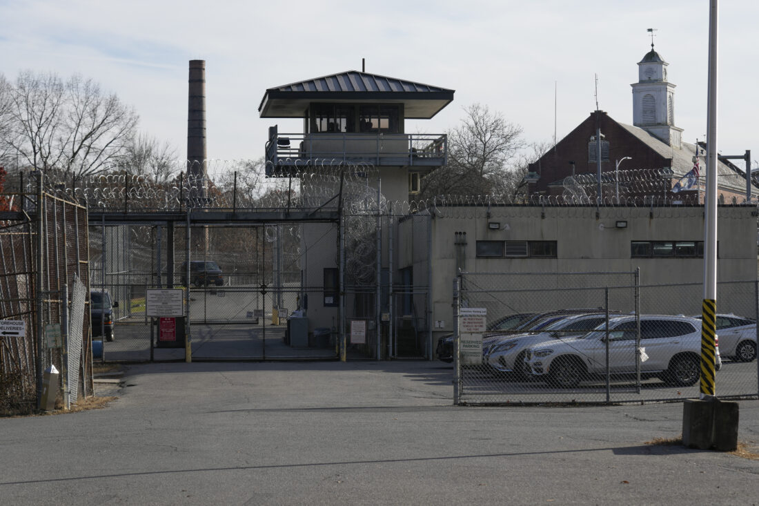 A guard tower stands near the entrance to the Bedford Hills Correctional Facility, Wednesday, Nov. 15, 2023, in Bedford Hills, N.Y. A year-long suspension of the legal time limit to sue over sexual assaults against adults in New York has led to a tidal wave of claims on behalf of women who were incarcerated. (AP Photo/Seth Wenig)