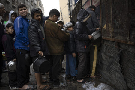 - Palestinian children wait in line for food distribution in Rafah, southern Gaza Strip, Wednesday, Dec. 13, 2023. An Israeli military offensive, launched in response to a deadly Oct. 7 Hamas attack, has led to shortages of food, medicine and other basic supplies in Gaza. (AP Photo/Fatima Shbair)