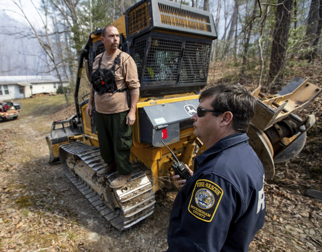 - Rockingham County Fire Chief Jeremy Holloway, right, directs firefighters as they work to protect houses during a wildfire along Brushy Run Road, Wednesday, March 20, 2024, in Bergton, Va. (Daniel Lin/Daily News-Record via AP)