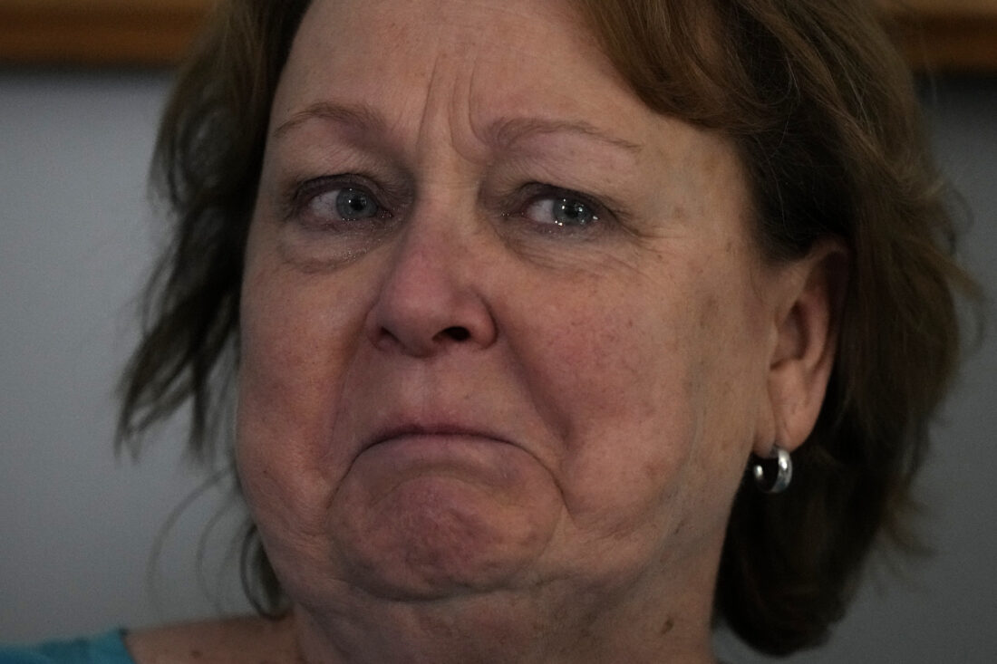 Robin Rank talks about the 2019 death of her son, Taylor Ware, Thursday, June 8, 2023, in Kansas City, Mo. She told a 911 dispatcher Taylor would need space, and urged police to wait for backup because he was a former wrestler and might be a handful – advice that tracked best practices, yet wasn’t followed. (AP Photo/Charlie Riedel)
