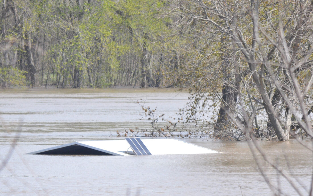 - The roof of a riverside building was all that could be seen in Williamstown near the ballfields Sunday. (Photo by Art Smith)