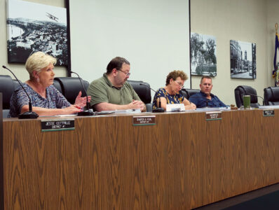 - Parkersburg City Councilwoman Sharon Kuhl, left, defends the Urban Renewal Authority’s decision to purchase and demolish the former Economy Inn on Seventh Street at a total expense of more than $800,000 during Tuesday’s council meeting as Councilman Bob Mercer, Councilwoman Wendy Tuck and council President Mike Reynolds listen. (Photo by Evan Bevins)