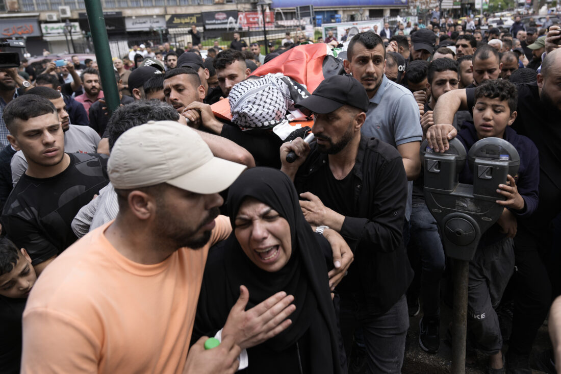 - FILE – Mourners carry the body of Samer Rumaneh, draped in a Palestinian flag, who was killed in an Israeli military raid, during his funeral in the West Bank city of Nablus, on May 12, 2024. An AP analysis of Gaza Health Ministry data finds the proportion of Palestinian women and children being killed in the Israel-Hamas war appears to have declined sharply. Israel faces heavy international criticism over unprecedented levels of civilian casualties in Gaza. (AP Photo/Majdi Mohammed)