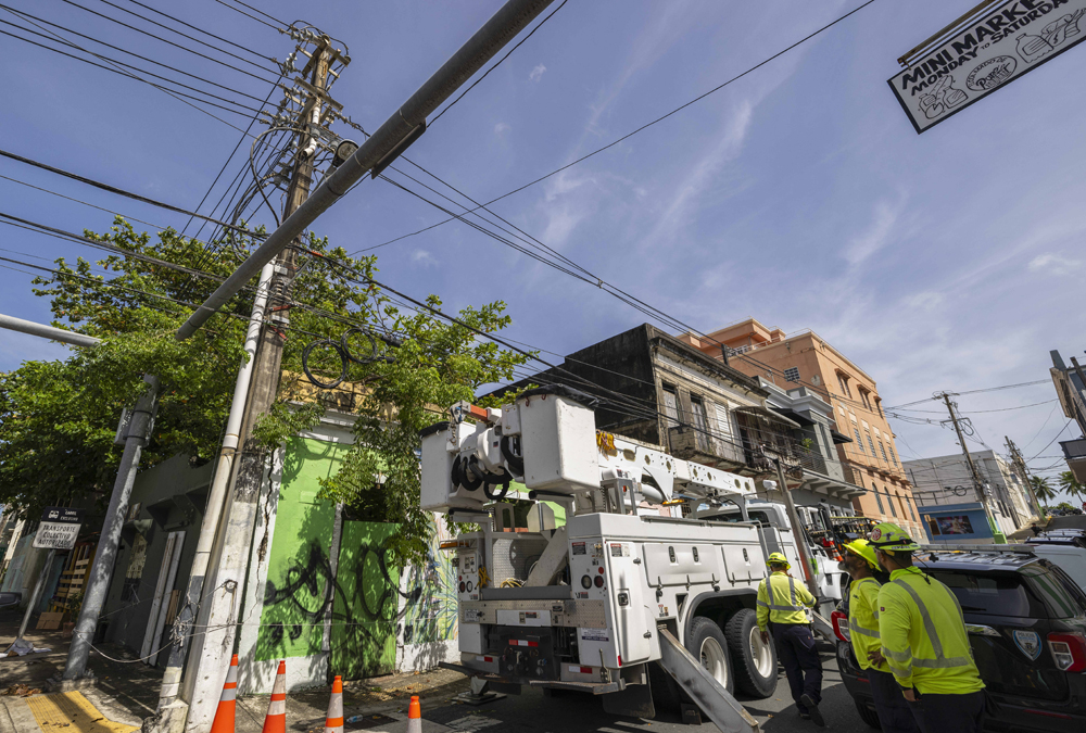 - Electric workers carry out repairs in the community of Puerta de Tierra after the passage of Tropical Storm Ernesto in San Juan, Puerto Rico, Thursday, Aug. 15, 2024. (AP Photo/Alejandro Granadillo)