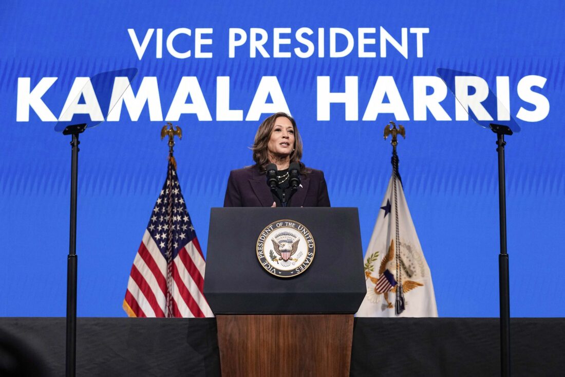 - FILE – Vice President Kamala Harris speaks during the American Federation of Teachers’ 88th national convention, July 25, 2024, in Houston. (AP Photo/Tony Gutierrez, file)
