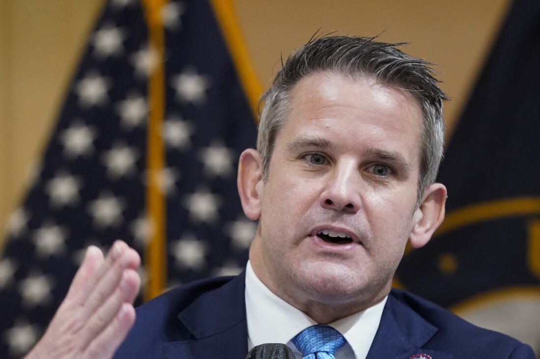- FILE – Rep. Adam Kinzinger, R-Ill., speaks during a hearting at the Capitol in Washington, July 21, 2022. Vice President Kamala Harris’ campaign is launching “Republicans for Harris” as she tries to win over Republican voters put off by former President Donald Trump’s candidacy. Harris’ team says the program will aim to use well-known Republicans, including Kinzinger, to activate their networks, with a particular emphasis on primary voters who backed former U.N. Ambassador Nikki Haley. (AP Photo/Patrick Semansky, File)