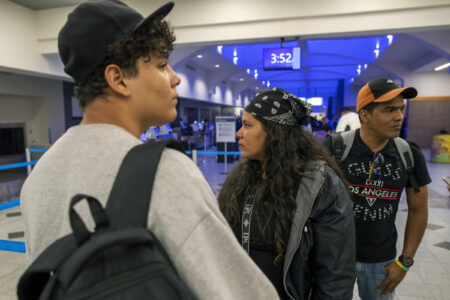 “In immigration, it’s important to say you belong to a country instead of feeling like you’re neither from there nor over there,” she says at the airport after helping migrant families get their boarding passes.