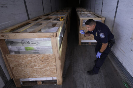 - A Customs and Border Protection officer inspects a truck’s cargo at the Port of Laredo in Laredo, Texas, on Friday, Aug. 9, 2024. (AP Photo/Eric Gay)
