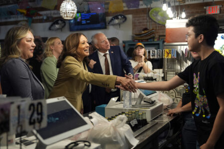 - FILE – Democratic presidential nominee Vice President Kamala Harris and running mate Minnesota Gov. Tim Walz visit the Cocina Adamex Mexican restaurant in Phoenix on Friday, Aug. 9, 2024. (AP Photo/Julia Nikhinson, File)