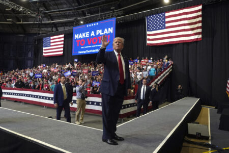 A short time later at a rally in Bozeman, Montana, Trump wastes no time getting to immigration, his signature issue. He uses “border” more than 30 times during his 100-minute speech.