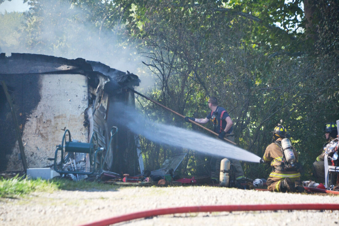 - Fire crews battled a blaze at 170 Pine Ave. Thursday afternoon as fire consumed a garage with a small apartment on top as well as causing damage to the back of the residence. (Photo by Brett Dunlap)