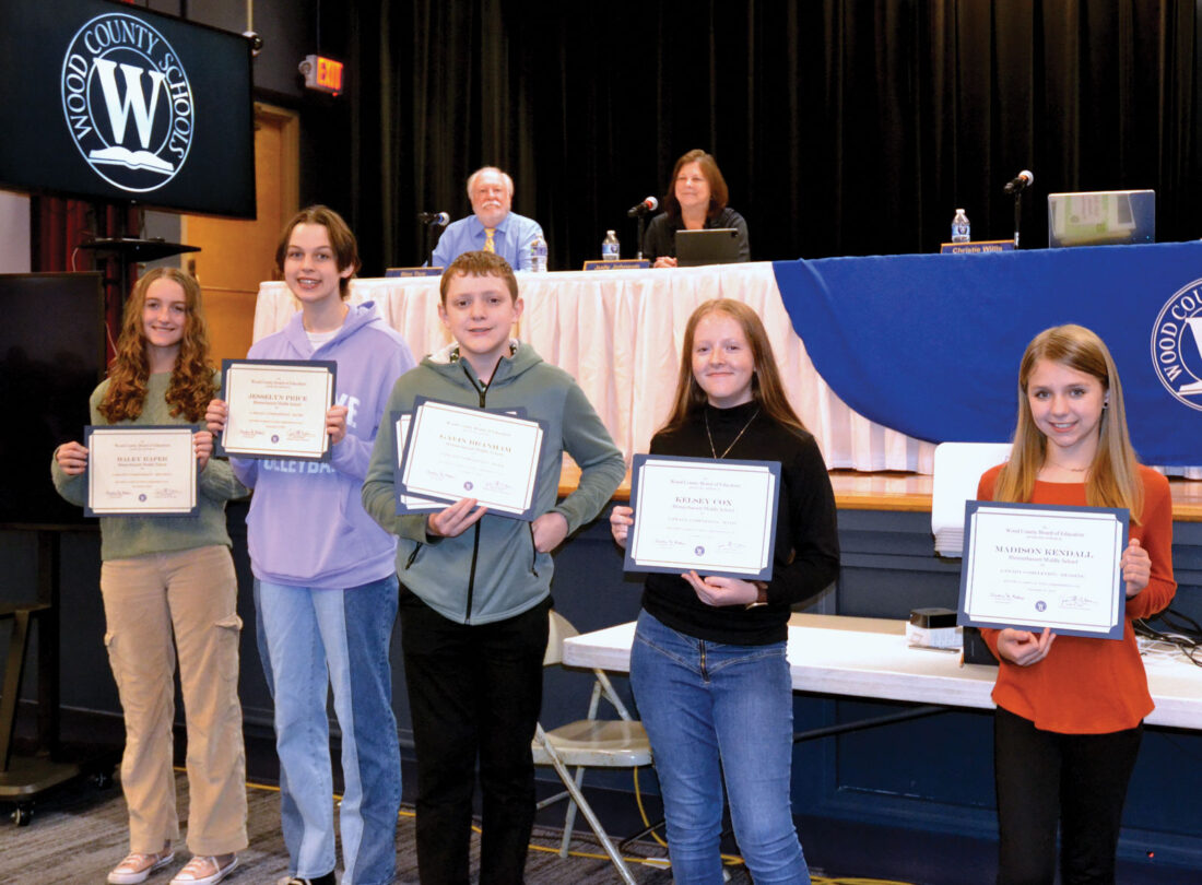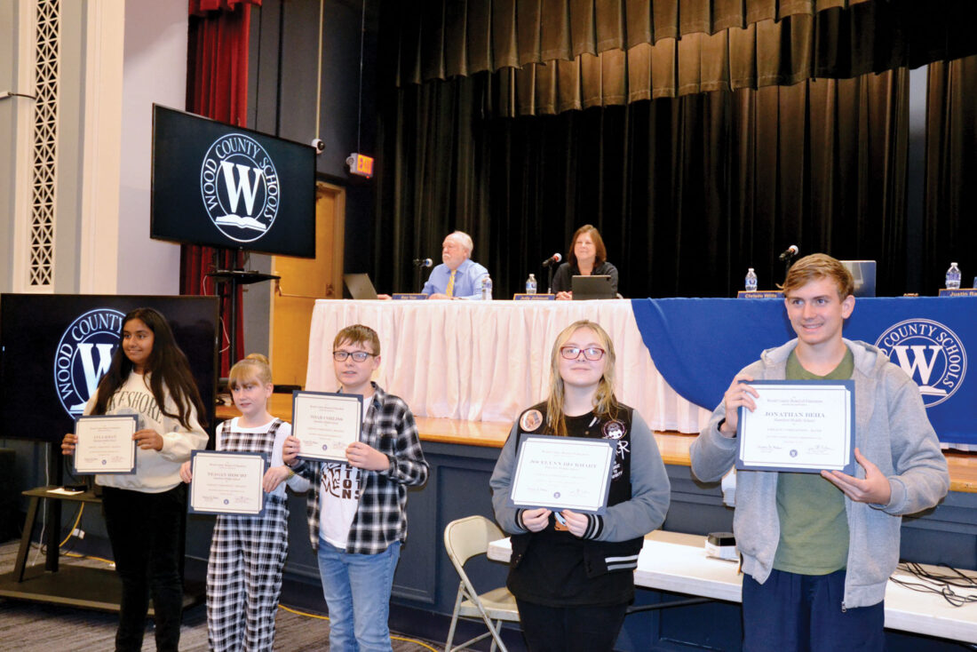 - Students from Edison Middle School were recognized Tuesday night by the Wood County Board of Education for their completion of i-Ready lessons. Pictured from left are Aubree Schoenlein, Olivia Pickrell, Ethan Howell, Jackson Holpp, Sydney Groo, Ayden Smith, Owen Davis, Maverick King, Ainslie Koreski and Lillian Phillips. (Photo by Douglass Huxley)