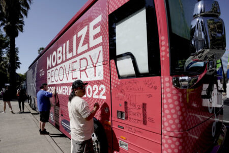 - FILE – Sa Thao signs the 2022 Mobile Recovery National Bus, a nationwide bus tour drawing attention to determine how billions in opioid settlement money should be used, during a stop in Sacramento, Calif. Sept. 7, 2022. (AP Photo/Rich Pedroncelli, File)