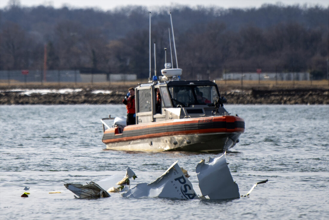 ARLINGTON, Va. (AP) — Police boats combed the banks of the Potomac River on Friday, slowly scanning the shoreline in the rain as investigators sought clues into the midair collision that killed 67 people and raised questions about air traffic safety around the nation’s capital.