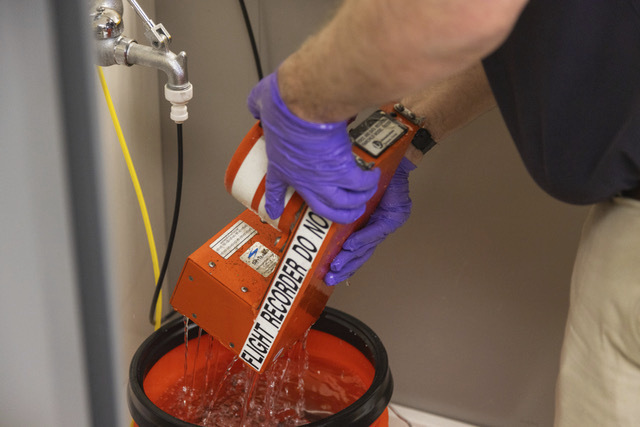 - National Transportation Safety Board (NTSB) investigators examine cockpit voice recorder and flight data recorder recovered from the American Airlines passenger jet that crashed with an Army helicopter Wednesday night near Washington, D.C, Thursday, Jan. 30, 2024. (NTSB via AP)
