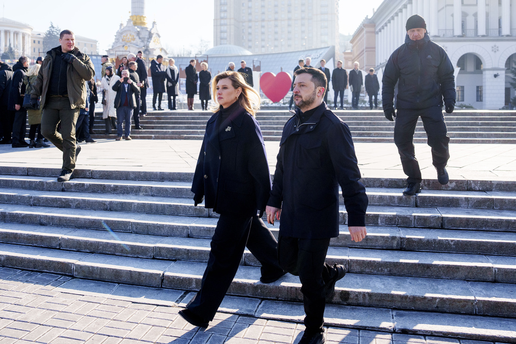 - Ukrainian President Volodymyr Zelenskyy and First Lady Olena Zelenska during a ceremony in Maidian Square to commemorate the third anniversary of the Russian invasion of Ukraine, in Kyiv, Monday, Feb. 24, 2025. (Javad Parsa/NTB via AP)