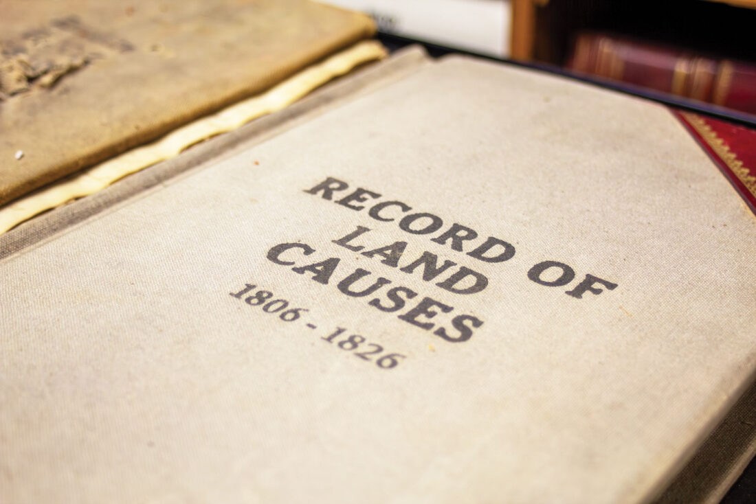 This book of court records housed in one of the file rooms in the Wood County Circuit Clerk’s office dates back to 1810. (Photo by Matty Lamp)