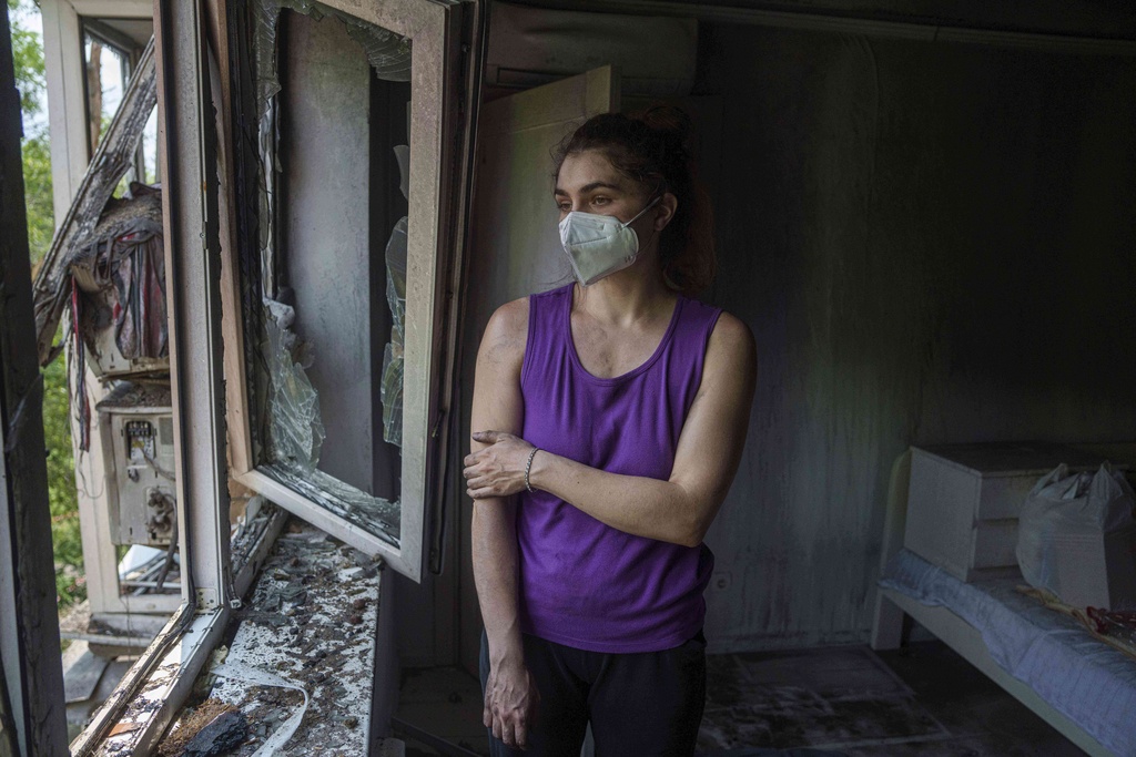 - Karyna Holf, 25, stands in her apartment which was damaged by a Russian drone strike in Kyiv, Ukraine, on Thursday, July 10, 2025. (AP Photo/Evgeniy Maloletka)