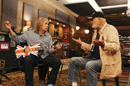 - This image released by Bleecker Street shows Christopher Guest, left, and Rob Reiner in a scene from “Spinal Tap II: The End Continues.” (Kyle Kaplan/Bleecker Street via AP)