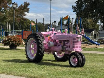 - A pink tractor for breast cancer awareness stationed at Civitan Park during the Apple Butter Stir Off Festival over the weekend.