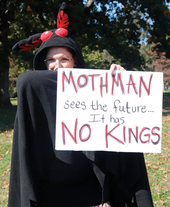 - Lauren Paskawych displays her protest sign at the No Kings Protest in Marietta, Saturday afternoon. (Photo by Gwen Sour)