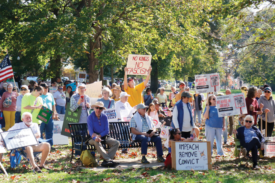 - People filled Muskingum Park for the No Kings Protest in Marietta on Saturday. About 1,000 people were in attendance. (Photo by Gwen Sour)