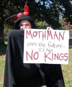 - Lauren Paskawych displays her protest sign at the No Kings Protest in Marietta, Saturday afternoon. (Photo by Gwen Sour)