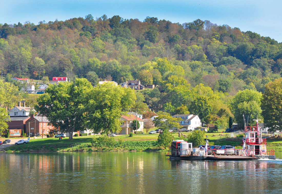 The Sistersville Ferry moves a group of cars across the Ohio River after leaving Fly, Ohio, late one afternoon recently. (Photo by Art Smith)