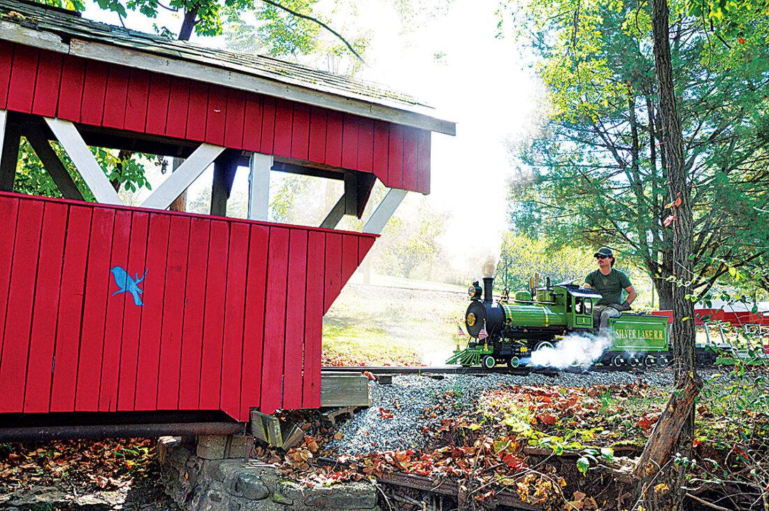 Shay Arnold prepares to enter a covered bridge along the half mile railroad. (Photo by Art Smith)