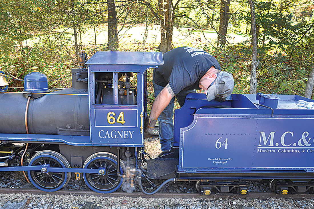 “My father’s side has always been into live steam. My dad has been into locomotives,” added Shay. Together they have restored two of the engines that they run on the rails placed 15 inches apart. The track runs through a covered bridge as it crosses a stream twice along the half mile. The group has built flatcars that can be pulled behind the engines for passengers. Another son of Chris Arnold, Jared Arnold, built an extremely detailed Chessie System caboose to bring up the tail end of trains.