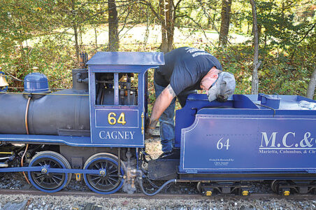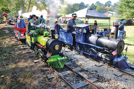 Bound by the love of trains, the group of friends gathered at the tracks recently for the annual “Steam-Up” to share with everyone the power of steam, with three trains making the loop. A train arrived at the outdoor station every few minutes.