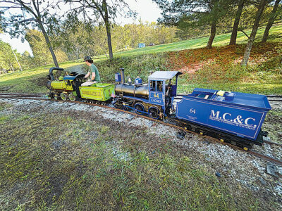 “My father’s side has always been into live steam. My dad has been into locomotives,” added Shay. Together they have restored two of the engines that they run on the rails placed 15 inches apart. The track runs through a covered bridge as it crosses a stream twice along the half mile. The group has built flatcars that can be pulled behind the engines for passengers. Another son of Chris Arnold, Jared Arnold, built an extremely detailed Chessie System caboose to bring up the tail end of trains.